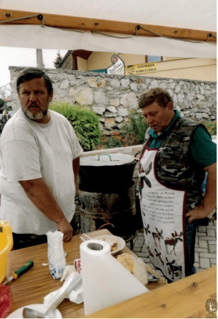 Varenie guľáša z diviny na ochutnávku pre dedinských hosti - PZ Konerád - rok 2018 – na fotke zľava: Tencer Jozef, Velebný Gabriel