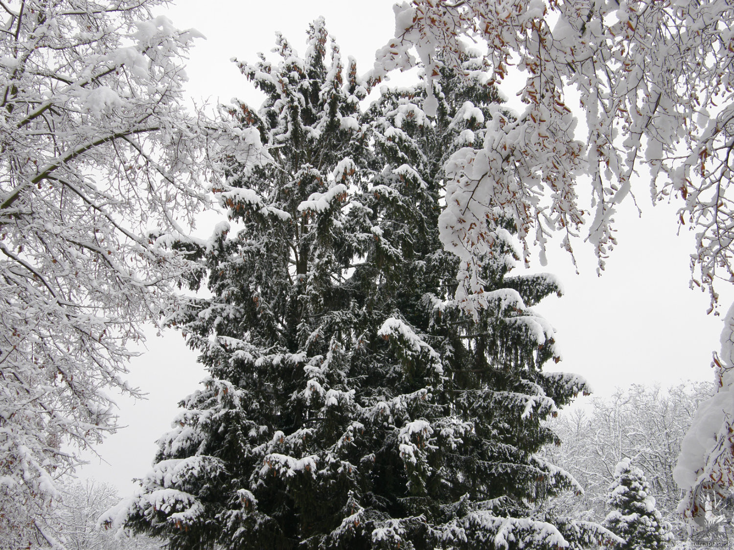 zasnežené smreky v cintoríne