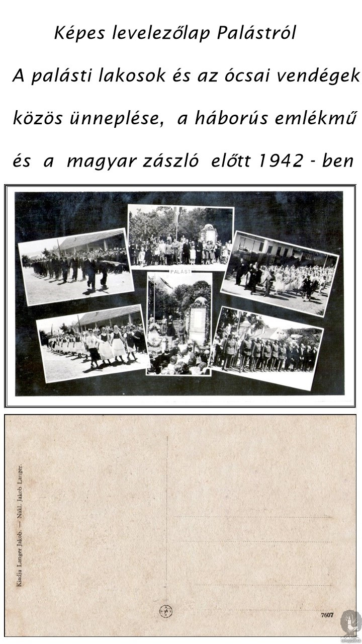 Pohľadnica z roku 1942 -Obyvatelia Plášťoviec s hosťami z Ócsi na slávnosti pred pamätníkom padlých vojnových hrdinov