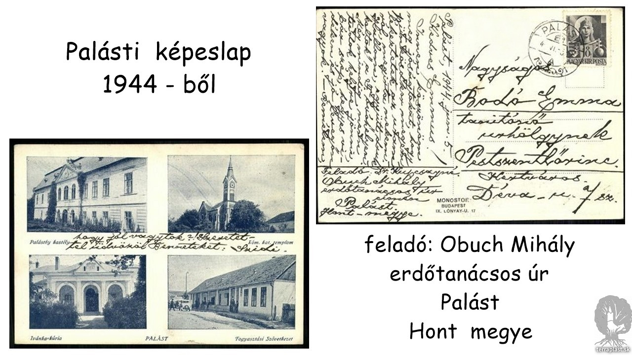 Pohľadnica z roku 1944 - odoslal správca lesa baróna Bergha Obuch Mihály